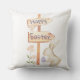 Este travesseiro decorativo personalizado apresenta um tema de Páscoa bonito. A imagem mostra um pequeno coelho branco esgueirando-se com um ovo decorado. Atrás do coelho está um cartaz de madeira que diz "Felz pascoa" com setas apontando na direção de onde vem o coelho. Um pássaro pequeno está empoleirado na placa.