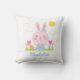 Travesseiro decorativo de coelhinho de Páscoa rosa e bonito. Personalize-o com seu nome ou "Felz pascoa" Projetado por Blackberry Boulevard.