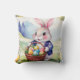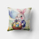 Celebrar a Páscoa e o momento da felicidade primavera com este "Coelhinho Feliz" com um coelho adorável vestindo uma casaco azul e segurando uma cesta de ovos de Páscoa contra um fundo primavera alegre.