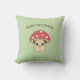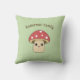 Um travesseiro verde com uma ilustração de um cogumelo fofo no estilo de desenho animado e texto marrom personalizável acima! Perfeito para adicionar um toque engraçado à sua casa ou para uma decoração de quarto para crianças!