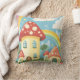 Cogumelos bonitos com chapéus vermelhos, castanhos e azuis com manchas brancas. Um céu azul com arco-íris. Belo toque na parede de um quarto infantil.