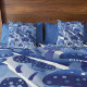 Uma imagem de aquarela abstrato, incluindo fungos de cogumelos e toadstools, tudo em azul. Uma sensação serena.