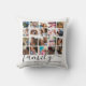 O travesseiro da família moderna apresenta uma colagem de fotos de você, sua família e amigos, e o bonito ditado "a família é qualquer um que o ama incondicionalmente" em um roteiro de tendências e fontes serif.