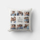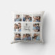Este travesseiro simples e na moda apresenta seu nome de família em um script preto manuscrito moderno em um quadrado de cinzas de criança no centro. Ao redor dele está uma grade de colagem de fotos com espaço para mostrar oito de suas fotos pessoais favoritas para um presente único que sua família amará.