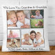Celebrar os melhores avós com este travesseiro personalizado de fotos brancas, com uma colagem de 6 fotos de seus netos, familiares, animais de estimação, etc., "Eu te amo" ou "Nós te amamos", e como elas são endereçadas, por exemplo, "vovó e vovô", "Mãe e Pop de Pop" etc. Você também pode adicionar os nomes dos netos na tipografia elegante.