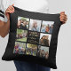 Crie o seu travesseiro decorativo personalizado aniversário de 21 anos de keepsasasakings preto de ouro moderno com 8 fotos personalizadas e script de nome de tendência.
