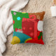 Este travesseiro decorativo tem uma design de Natal de uma colagem de uma árvore de Natal, um ornamento, uma estocagem, um presente, e um rapaz de pão de gengibre.
