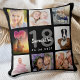 Um presente único para o aniversário de 18 anos de uma garota, celebrando sua vida com uma colagem de 8 fotos, fotos. Personalize e adicione seu nome, 18 anos e uma data. Um fundo preto chic. Cinzas e letras brancas e números. O nome é escrito com um moderno estilo escrito à mão.
