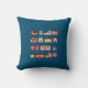 Um bonito travesseiro decorativo azul escuro com edifícios coloridos em diferentes estilos arquitetônicos - um bom presente para os arquitetos.