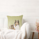 Este travesseiro decorativo caracteriza meu desenho de um Collie áspero lindo, contra um fundo abstrato da samambaia. Estes cães surpreendentes foram usados reunindo em Scotland, e têm-se transformado desde um animal de estimação popular. Este coxim olharia bonito em toda a sala e faria um grande presente.