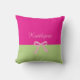 Wrap up your room decor with a cute bow on a decorative throw pillow! This design features color blocking with a bow and ribbon to tie it all together. One side features your name in script, and on the other side your monogram initial. Edit the template to customize these throw pillows and turn your dorm room or sorority house decor into something truly special.