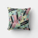 Colorful urban graffiti patchwork pattern throw pillow featuring bold abstract blocks, expressive brush strokes, scribbles, stars, and mixed-media textures in bright blue, yellow, pink, orange, and black. Energetic and edgy with a modern street art aesthetic, this seamless design is ideal for graffiti art lovers, maximalist style fans, creative teens, and contemporary art enthusiasts.