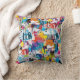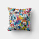 Colorful urban graffiti patchwork pattern throw pillow featuring bold abstract blocks, expressive brush strokes, scribbles, stars, and mixed-media textures in bright blue, yellow, pink, orange, and black. Energetic and edgy with a modern street art aesthetic, this seamless design is ideal for graffiti art lovers, maximalist style fans, creative teens, and contemporary art enthusiasts.
