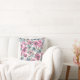 Decorative pillow with a vibrant floral pattern of pink, purple, and blue flowers with green leaves against a light background, front and back view.