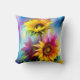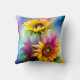 Golden sunflowers with shades of pink and purple on a blue and white background