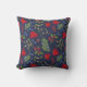 Almofada elegante com ilustração botânica de outono. Padrão brilhante de bordo, azevinho, visco e zimbro em fundo azul escuro.