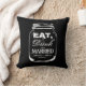 Travesseiro decorativo chique do frasco de pedreiro do país rústico preto e branco com citações. Coma a bebida e é casado. Design bonito da tipografia do vintage com impressão desvanecido. Decorações elegantes da festa de casamento ou decoração home para a sala de visitas/quarto. Texto rústico no frasco de vidro. Cor customizável do fundo.