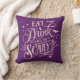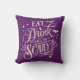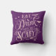 Almofada Coma Bebida e Assuste o Dia das Bruxas Roxo