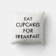 Este travesseiro preto-e-branco é decorado com o ditado bonito, Coma Cupcakes para o café da manhã na frente e atrás, fazer-o perfeito para um quarto, quarto ou sala de estar.