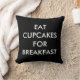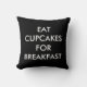 Este travesseiro preto e branco é decorado com o ditado bonito, Coma Cupcakes para o café da manhã na frente e atrás, fazer-o perfeito para um quarto ou sala de estar.