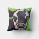 O design impressionante da vaca com fundo verde faz este divertimento do travesseiro para todo o ponto ocasional. O design bovino foi criado de uma pintura.