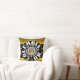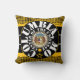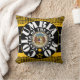 Travesseiro decorativo preto e ouro com design de cão na frente e preto, branco e círculos concêntricos de ouro design e "COLUMBIA, MISSOURI CENTER DO UNIVERSO" e o Excelente Selo do Missouri no centro e "GO TIGERS!!! Columbia, MO" à direita em script com Y-NOT-ME. Esta design é um grito para Columbia, Missouri, uma cidade universitária excelente.