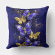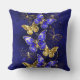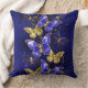 Composição de borboletas luxuosas de safira e joias de ouro em fundo azul texturizado.