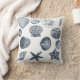 Cascas náuticas com vintage em travesseiro azul e branco reversível com marinho sólido azul com tiras brancas do outro lado