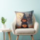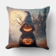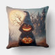 Um personagem esquimundo com o tema da abóbora segurando um jack-o-lanterno brilhante, cercado por árvores estranhas sob a lua de cheio. As decorações de Halloween e as abóboras brilhantes melhoram a atmosfera festiva no ambiente assustador.