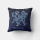 Travesseiro decorativo com o símbolo do zodíaco de Gemini em azul-prata suave, sobreposto com as estrelas da constelação, contra um fundo do céu estrelado formando de azul-da-meia-noite para preto.