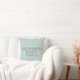 Travesseiros decorativos modernos com coordenadas de latitude e longitude do mapa decimal da cidade de Greensboro NC em fontes industriais da cinza moderna em fundo azul claro