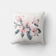 Um travesseiro com uma bonito ilustração aquosa de flores cor-de-rosa com folhas de cinza em um caule de solteiro. Um design botânico elegante moderno.