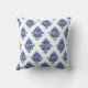 Travesseiro estilo Elegant Hamptons com um padrão de marinho azul vintage damask motif em branco
