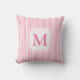 Este travesseiro listrado cor-de-rosa e branco tem uma estética de Palm Beach tendeny quando combinado com um padrão de folha tropical. Você pode personalizar este travesseiro com seu monograma.