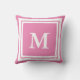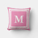Este travesseiro cor-de-rosa e branco tem uma grande inicial branca no centro. Você pode personalizar este travesseiro decorativo com o monograma do destinatário.