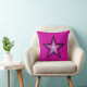 Design moderno com uma estrela rosa e preta "brilhante" sobre fundo rosa na frente e uma parte preta plana na parte de trás. Travesseiro decorativo com um design personalizável para você personalizar com seu próprio texto, imagens e ideias. Esta é uma imagem de arte digital criada usando fotografias originais e técnicas digitais e impressa em tecido, ela não brilha ou contém faíscas reais.