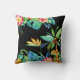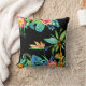 Este travesseiro decorativo tropical colorido é um presente perfeito para a pessoa que ama os trópicos! Imagens em aquarelas de hibisco, folhas exóticas, pássaros do paraíso, florais tropicais, abacaxis e palmeiras sobre fundo negro que gravam frente e verso. Este travesseiro apresenta azuis, verdes, pinks, laranjas, amarelos e vermelhos.