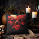 Coração Crânio com Travesseiro decorativo de Flores. © Desejos do Coração Escuro. Este travesseiro decorativo gótico tem um design de crânio em forma de coração rodeado por flores.