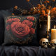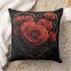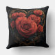 Almofada de Arremesso Coração de Ouro Escuro com Rosas. © Desejos do Coração Escuro. Esta almofada de arremesso escura tem um coração de Ouro Antigo nela preenchido com rosas vermelhas exuberantes.