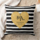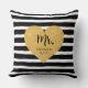 Almofada Coração Dourado Elegante Listras Pretas Recém-Casa