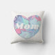 Travesseiro cardíaco com padrão de mãe rosa e azul. A frente do travesseiro tem um coração de padrão de mármore texturizado, com a palavra Mãe em branco. A palavra mãe pode ser alterada, e o estilo e a cor da fonte podem ser personalizados de acordo com suas necessidades. A parte de trás do travesseiro é um padrão, usando a palavra mãe em texto de mármore para combinar o coração na frente.