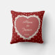 Almofada do Dia dos Namorados personalizável Coquette. O design apresenta uma foto estética de um coração cortado em um fundo vermelho com pequenos corações. O verso apresenta seus nomes e data. Esta almofada vermelha coquette é perfeita para casamentos, Dia dos Namorados e outros eventos.