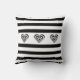 Corações concêntricos modernos no Travesseiro decorativo listrado preto e branco. Travesseiro decorativo de faixa na moda a preto e branco.
