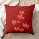 Este trabalho de arte retrata um design arranjado em um modo simétrico, Flor de Vida, criando uma geometria equilibrada de corações Ferrari-vermelho uniformemente espaçados em uma canvas intensa vermelha-creme, fazer um travesseiro decorativo dinâmico