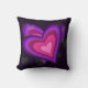 Travesseiro decorativo de corações preto e roxo. Reversível. Design na parte traseira é invertida. Duas dessas travesseiros num sofá terão um efeito de espelho. Um presente de Dia de os namorados.