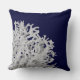 Este travesseiro moderno apresenta coral marinho branco tropical em um fundo azul marinho e é perfeito para casa de praia, casa de praia, ou para decoração doméstica com tema náutico, costeiro ou praia, ou se você vive perto do oceano. Fotografia do coral e design © por TK Goforth, todos os direitos reservados.