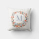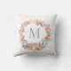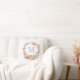 Uma almofada de Natal atemporal com uma coroa de Natal em aquarela elegante em azul poeira suave, vermelho e pêssego, emoldurando delicadamente um monograma personalizado em tipografia moderna.