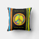 Todas as cores neste travesseiro de sotaque são personalizáveis. Este design é composto de apenas cinco formas básicas (quatro retângulos e um círculo) para as quais você pode escolher as cores que quiser para o preenchimento e bordas. Você pode ativar ou desativar o padrão de fundo do corante de gravata e escolher qualquer cor sólida que quiser para um plano de fundo (mostrado aqui em preto) se o corante de gravata estiver desligado. Até mesmo o sinal de paz é personalizável; reproduza com os filtros de imagem para efeitos de cor diferentes, redimensione-o ou até substitua-o por uma imagem própria ou um monograma. Divirta-se fazer este travesseiro que chama a atenção é mesmo seu!