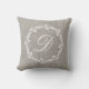 Almofada decorativa personalizada com monograma circundado por uma coroa em estilo de fazenda.