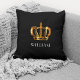 Real Dourada Coroa Nome Personalizado Travesseiro decorativo Preto